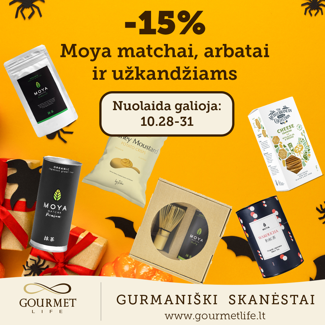 Haloween’o nuolaidos: -15% Moya Matcha, arbatai bei užkandžiams Gourmet life parduotuvėje