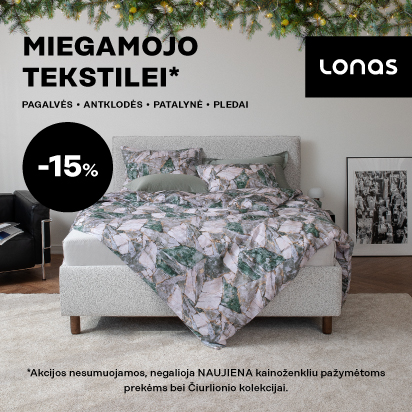 Miegamojo tekstilei* -15% iki gruodžio 31 d. Atraskite šventinių dovanų idėjų www.lonas.lt arba artimiausiame salone.