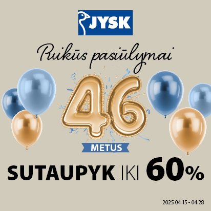 JYSK švenčia savo gimtadienį su nuolaidomis iki 60% vidaus ir lauko baldams, antklodėms, pagalvėms, krepšiams, užuolaidoms ir čiužiniams.