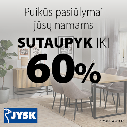 Sutaupykite iki 60 % vidaus ir lauko baldams, patalynei, užuolaidoms, interjero prekėms, pintiems krepšiams, laikymo dėžėms ir čiužiniams.