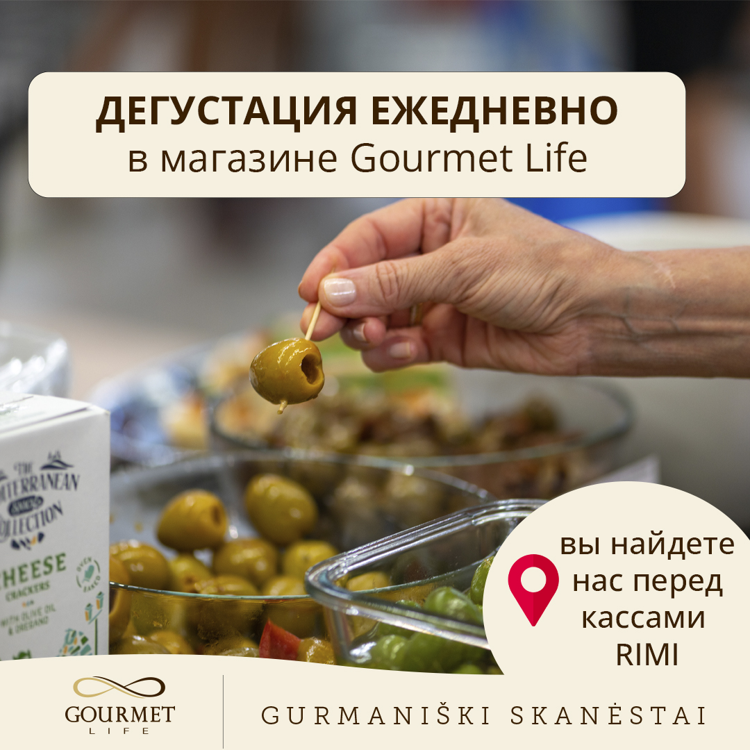 В магазине деликатесов Gourmet life – дегустации продукции проводятся каждый день! Во время дегустаций вы сможете познакомиться с оливками, спредами, изысканными закусками и открыть для себя новые вкусы!