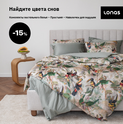 На комплекты постельного белья, простыни и наволочки –15 %