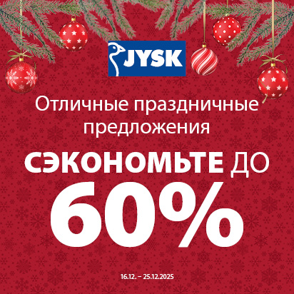 Экономьте до 60% на рождественских товарах, пледах, подушках, мебели и многом другом. Найдите подходящий подарок для каждого – в магазинах JYSK и на JYSK lt