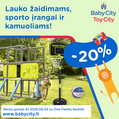 Поехали веселиться! Сейчас скидки до 20 % на игры на улице, спортивный инвентарь и мячи! В ассортименте — горки, мячи, палатки и многое другое в BabyCity/ToyCity. Акция действует до 06.02, только при наличии карты «Одна семья»! Не действует на товары, отмеченные красной ценой на сайте. Скидка распространяется только на товары, не имеющиеся в наличии. Не упустите возможность посетить сайт www.babycity.lt или ближайший к вам магазин.